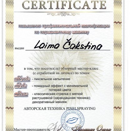 2007.g. 08.09. Galateja Micropigmentation Certificate level C1, C2, C3