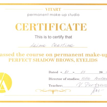 2007.g. 05.02. Galateja Micropigmentation Certificate level 1,2,3