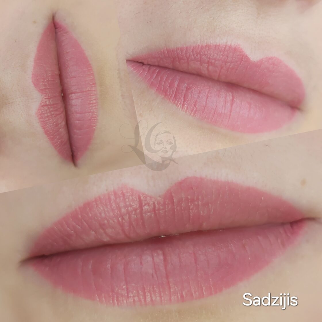 Lūpu mikropigmentācija, viegls Nude uzreiz pēc procedūras -